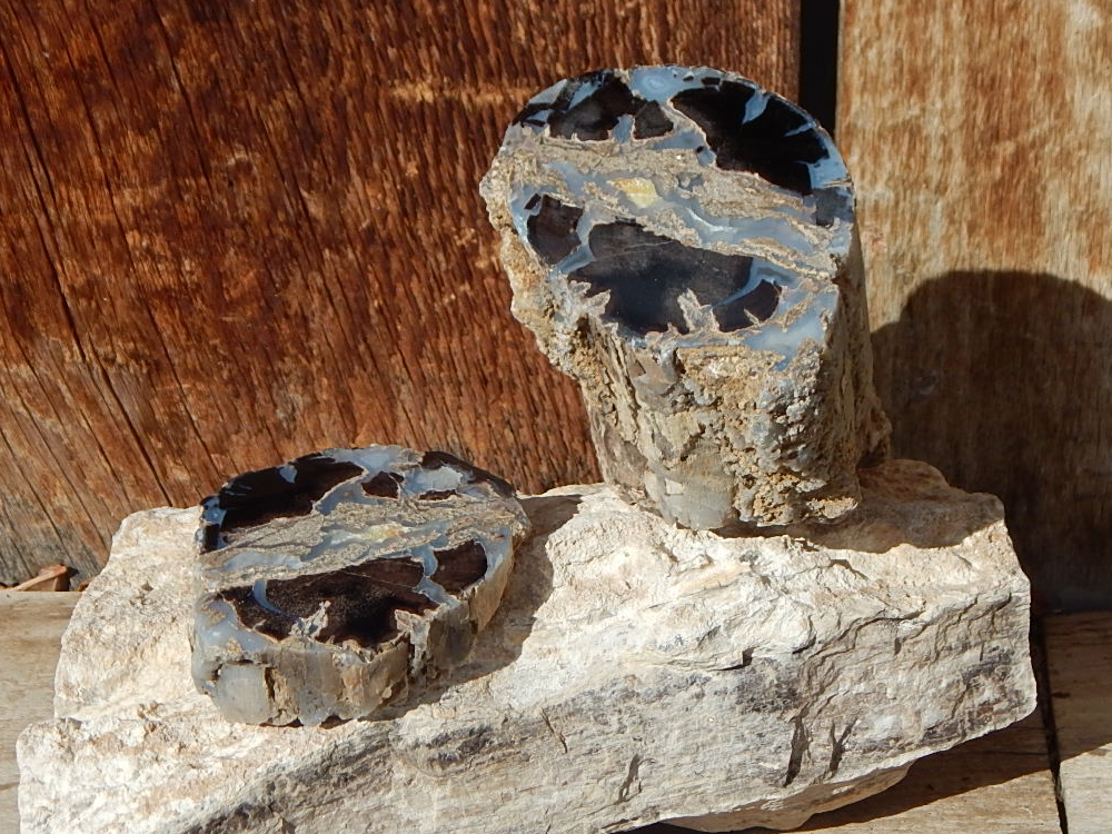 WY Blue Forest Petrified Wood Cut & Polished Limb Pair Specimens — 2" x 3" x 4" — 1.5 lb